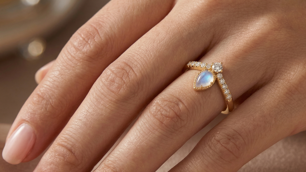 Oval opal ring. Opal and diamond ring. Opal engagement ring with fine millgrain detail. 14K, 18K or platinum.